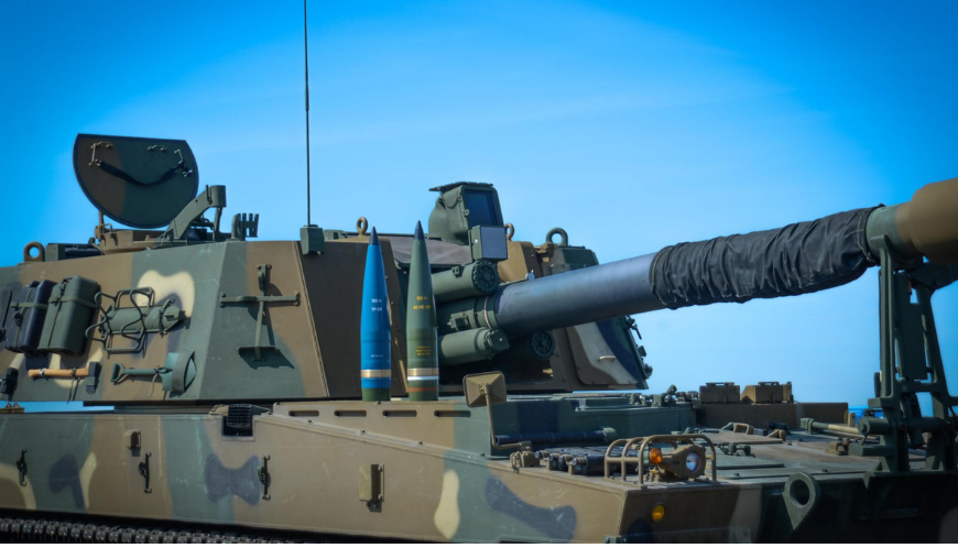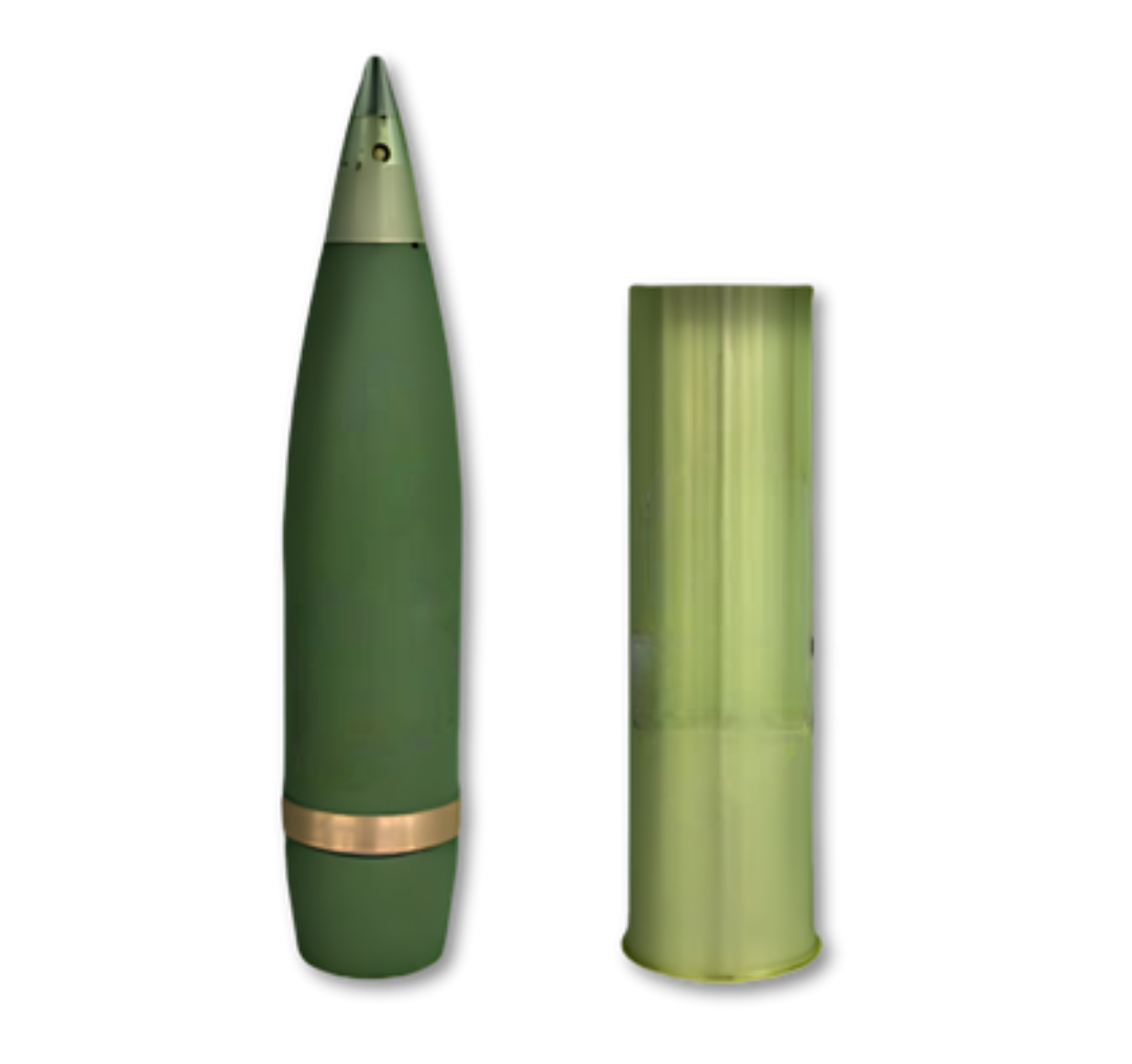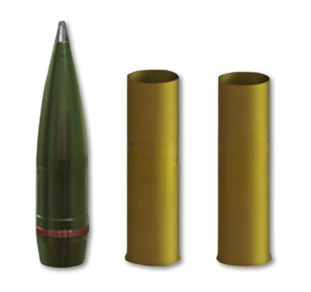 The round 155 mm is separate loaded, with a high-explosive projectile M107 and propellant charge M4A2. It is intended for the destruction of personnel, light fortifications, unarmored and lightly armored vehicles, etc.